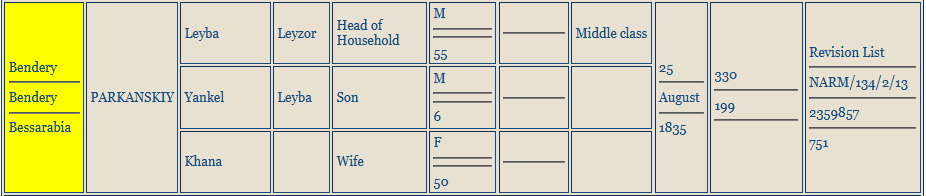 1835 - Census 1835 - Leib Parkansky and family